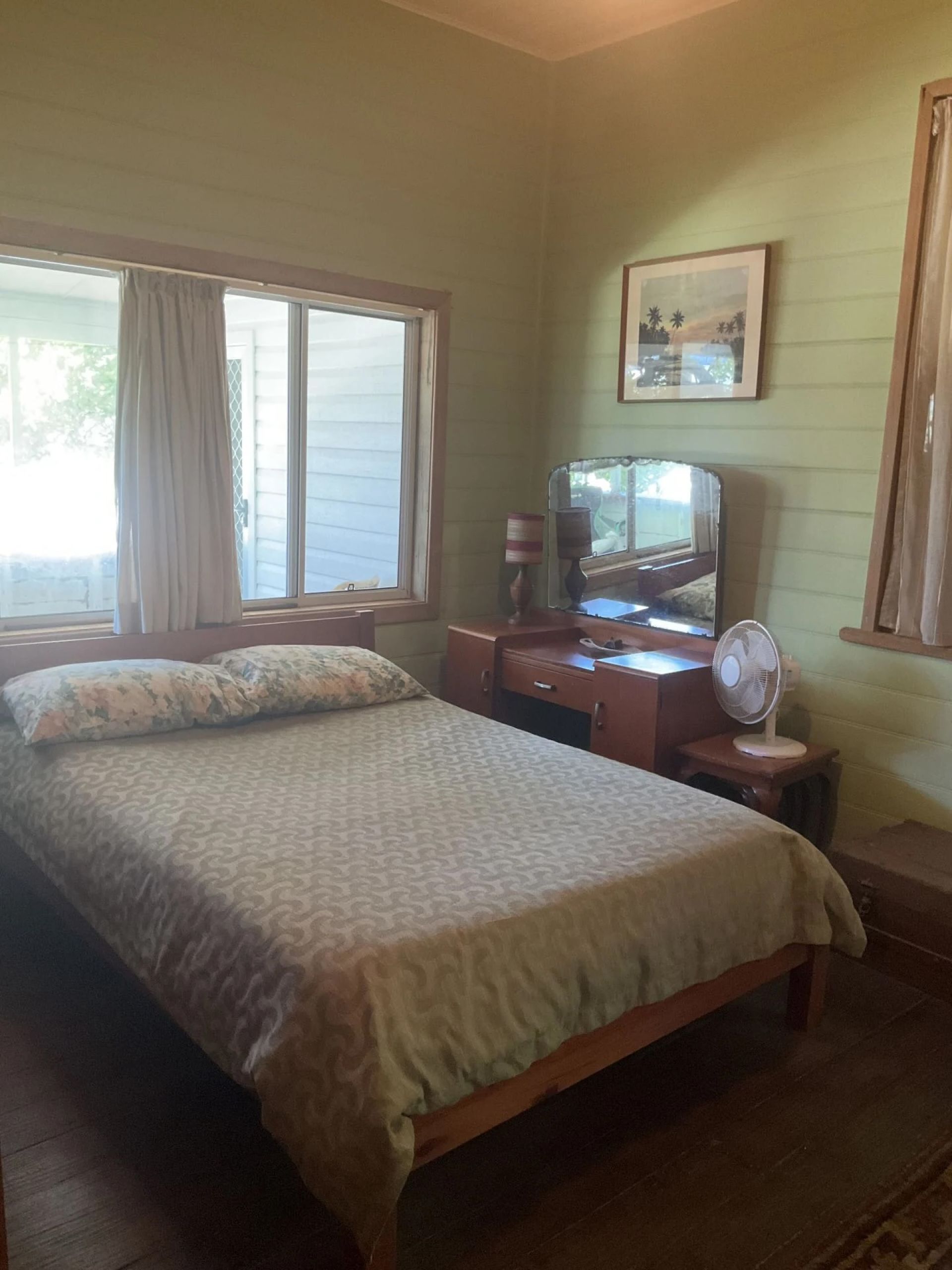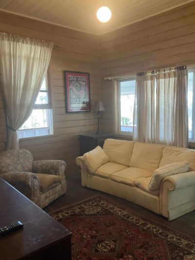 Fully furnished or partially furnished, this country-style home has two bedrooms and a bathroom, with a bathtub. There is also another room, which could be used as a study or a sleepout. The kitchen can be fully equipped or not depending on your needs, with plenty of storage, opens out onto the enclosed verandah and dining room. As well as a separate lounge area, there is an undercover carport for one car, a leafy aspect both at the front and rear of the house, and glimpses of the ocean.
