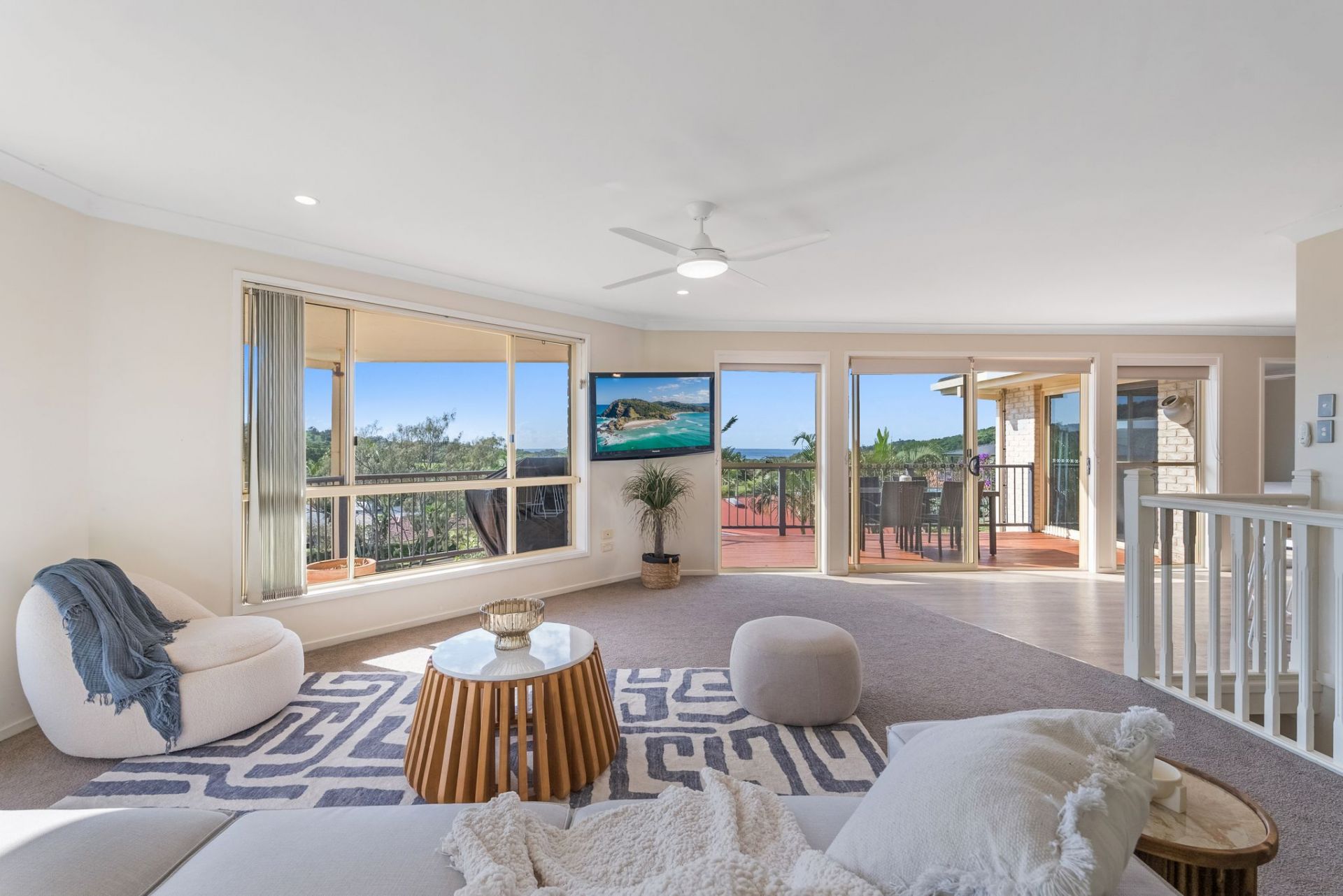 - Main bedroom with ocean views, walk-in robe, ensuite and access to veranda